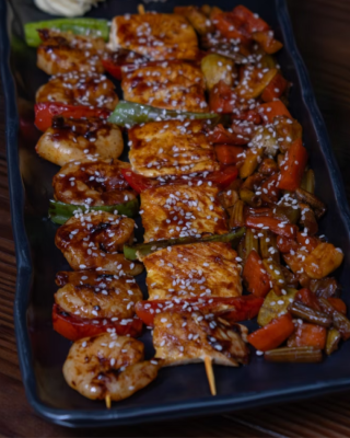 |  Ingrédients (2 personnes) : Pour les brochettes : - 300 g de veau (épaule ou quasi), coupé en cubes - 5 c. à soupe de marinade à l’ail des ours - Sel, poivre - Petits pics à brochettes 2. Pour les raisins rôtis : - 1 grappe de raisins noirs ou blancs - 1 filet de miel - Thym frais 3. Pour la polenta : - 80 g de polenta rapide - 30 g de parmesan (ou pecorino) - 25 cl d’eau + 25 cl de lait - Beurre, sel, poivre Préparation : 1. Marinez la viande - Dans un bol, mélangez les cubes de veau avec la marinade à l’ail des ours. - Couvrez et laissez mariner 1h minimum (idéalement 3-4h). 2. Préparez la polenta - Faites bouillir l’eau et le lait, sale. - Versez la polenta en pluie, remuez jusqu’à épaississement. - Ajoutez le parmesan, poivre, une noix de beurre. - Étalez la polenta sur une plaque en couche fine (1 cm), laissez refroidir puis coupez en carrés. - Poêlez les carrés dans un peu d’huile pour les rendre croustillants au moment de servir. 3. Rôtissez les raisins - Disposez les raisins dans un plat avec un filet d’huile, un peu de miel et du thym. - Enfournez à 180°C pour 15 minutes jusqu’à ce qu’ils éclatent légèrement. - Faites griller les brochettes - Enfilez les cubes de veau sur des pics. - Poêlez ou grillez-les à feu vif 2-3 min de chaque côté (selon cuisson désirée). 4. Dressez l’assiette Partagez vos recettes avec #lacuisineprovencale |