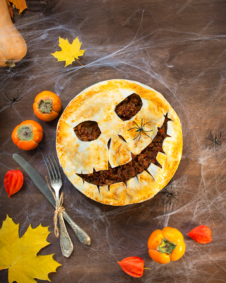 |  Ingrédients : - 1 pâte brisée (fond de tarte) - 1 pâte feuilletée (dessus de tarte/visage) -1 bocal de sauce tomate au piment d’Espelette La Cuisine Provençale - 300 g de viande hachée (bœuf, poulet ou végétale type haché veggie) - 1 oignon (facultatif) - 1 filet d’huile d’olive - 100 g de fromage râpé (emmental, cheddar, comté… au choix) - Sel, poivre (à ajuster selon les goûts) Pour la dorure : - 1 œuf battu 1. La garniture : - Dans une poêle, faites revenir l’oignon émincé avec un filet d’huile d’olive. - Ajoutez la viande hachée, faites la bien cuire, salez et poivrez légèrement. - Une fois la viande cuite, versez la sauce tomate au piment d’Espelette La Cuisine Provençale. - Mélangez et laissez mijoter quelques minutes pour que la garniture épaississe un peu. - Retirez du feu, laissez tiédir, puis incorporez le fromage râpé. 2. Montage de la tarte : - Préchauffez votre four à 180°C (chaleur tournante). - Étalez la pâte brisée dans un moule à tarte. - Piquez le fond à la fourchette. - Versez la garniture tomate-piment-viande-fromage sur le fond de tarte en laissant un peu d’espace sur les bords pour la suite.  3. Découpe du visage - Sur une feuille de papier sulfurisé ou directement sur le plan de travail, étalez la pâte feuilletée. - À l’aide d’un couteau fin ou cutter alimentaire, découpez un visage façon Jack-o'-lantern : Deux yeux en triangle Un petit nez Une grande bouche (sourire ou grimace, à vous de choisir !) - Déposez délicatement cette pâte sculptée sur le dessus de la tarte. - Soudez les bords avec un peu d’eau. - Badigeonnez la surface d’œuf battu pour la dorure. 4. Cuisson : - Enfournez pour 35 à 40 minutes, jusqu’à ce que la pâte soit bien dorée et croustillante. - Laissez reposer, sur une grille, 10 minutes avant de servir. Bon appétit ! Partagez vos recettes avec #lacuisineprovencale |